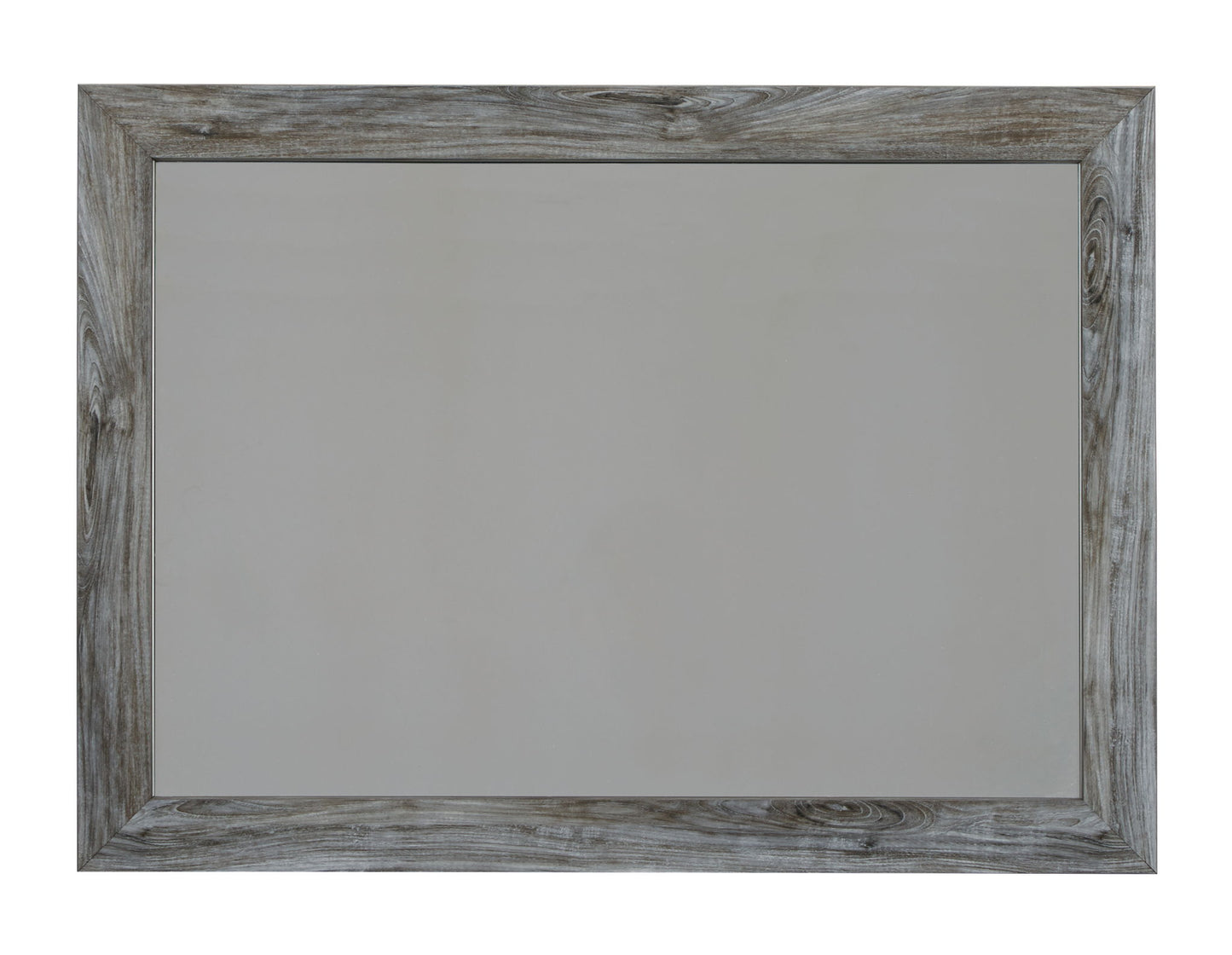 Casually cool style and clean lines go hand in hand with this bedroom mirror. A weathered finish over replicated oak grain creates an easygoing vibe, setting the scene in your restful retreat. The fuss-free, versatile piece can be mounted on a wall or dresser.